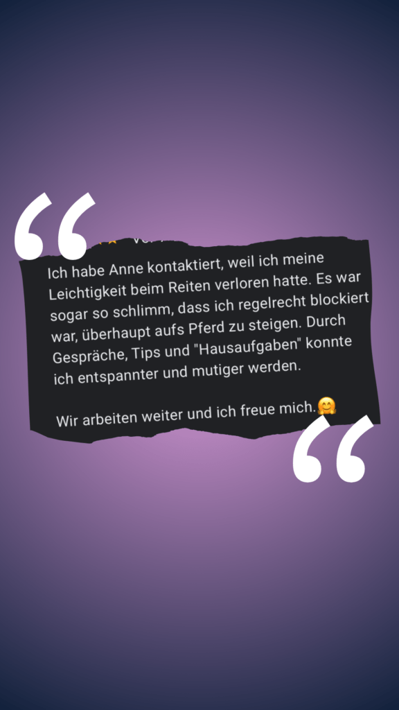„Ich habe schonmal einen Kurs in der Richtung gemacht, da ging es auch um Angst beim Reiten, und der hat nicht geholfen.“
