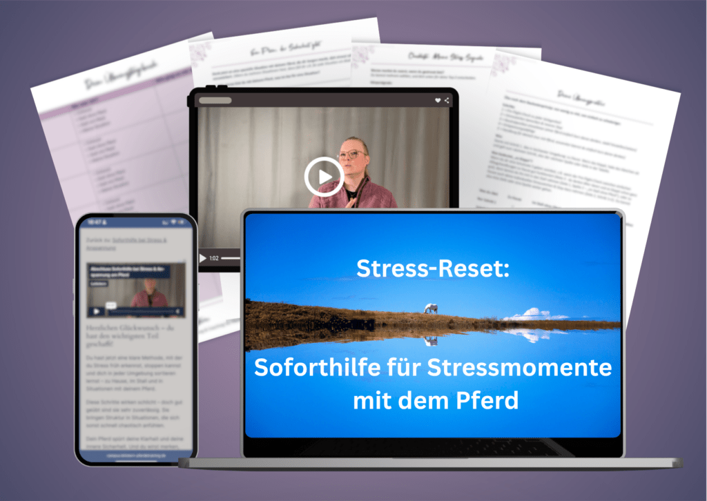 Überlass deine Zeit mit dem Pferd nicht länger Zufall, Hoffnung und äußeren Umständen. Dieser Mini-Kurs gibt dir ein klares Werkzeug, mit dem du von innen heraus ruhig und handlungsfähig bleibst – du machst einen Stress-Reset.